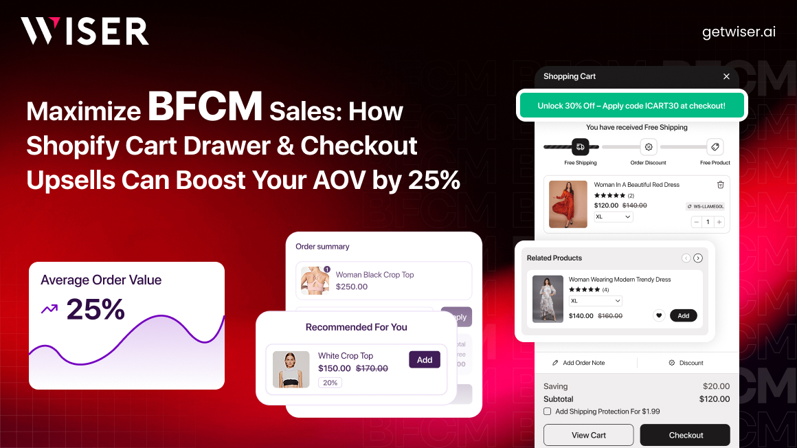How effectively you maximize the value of every shopper is the basis for deciding whether it was a good or a record-shattering BFCM this year. And, the secret to doing it lies in a data-driven combination of Shopify cart drawer upsell, post-purchase upsell Shopify tools, and intelligent customer behavior tracking powered by the latest product recommendation apps like WISER AI-powered product recommendation Shopify App.