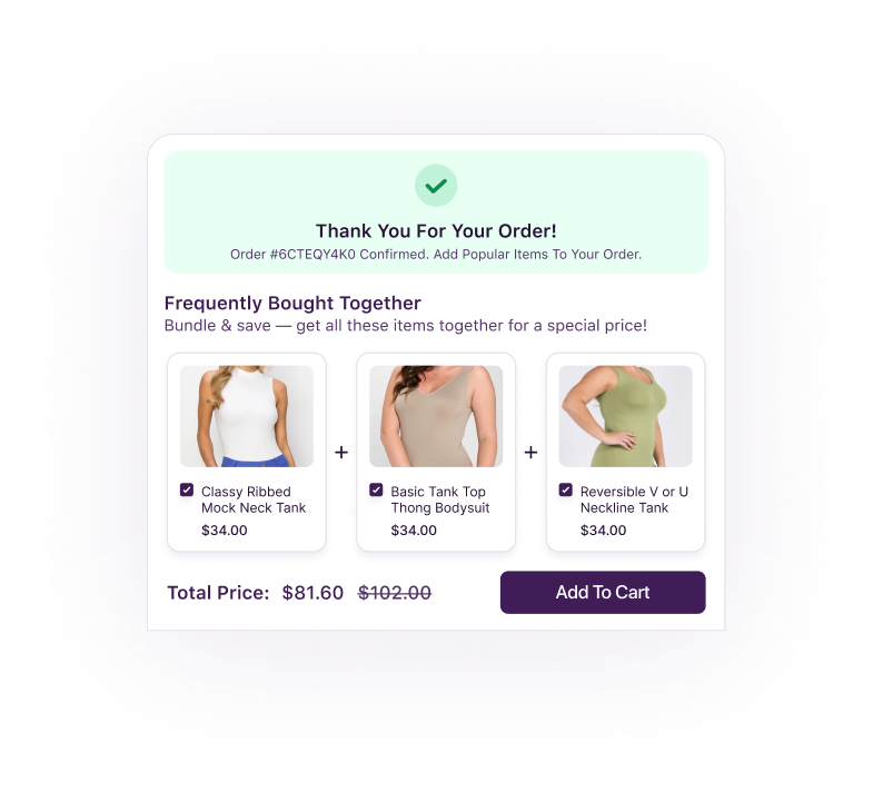 Show relevant products at every stage of the customer journey—from product page to checkout.